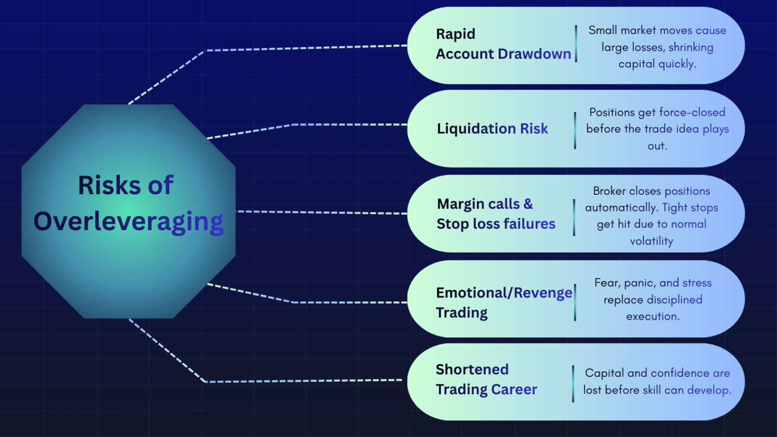 No other mistake can drain a beginner’s trading account faster than overleveraging. Not bad strategies, not poor indicators, not even wrong entries or exits.