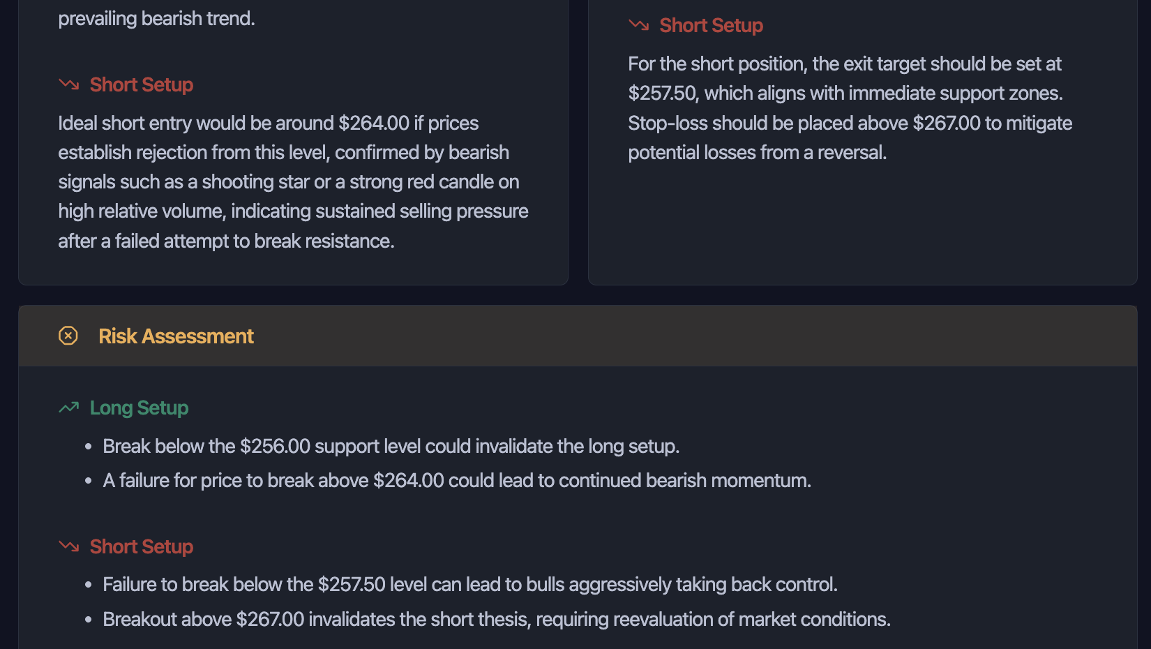 Defined long and short setups with entry zones, targets, and risk management guidance.